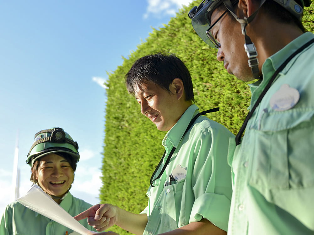 また、新しい技術や機器の導入や教育にも力を入れています。例えば、樹木班ではツリークライミングについて経験を積めば試験受講できる制度を活用したり、仕事柄身体をつかう仕事なので身体の負担が軽減できる道具を選定したり。夜間業務では照明用のテラスターを導入したりするなど、働きやすく安全な環境作りに取り組んでいます。
